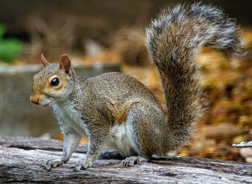 Eastern gray squirrel: The eastern gray squirrel is native to the Midwestern United States and the Eastern and Southern provinces of Canada. They have gray fur, a white belly, and a large, bushy tail.