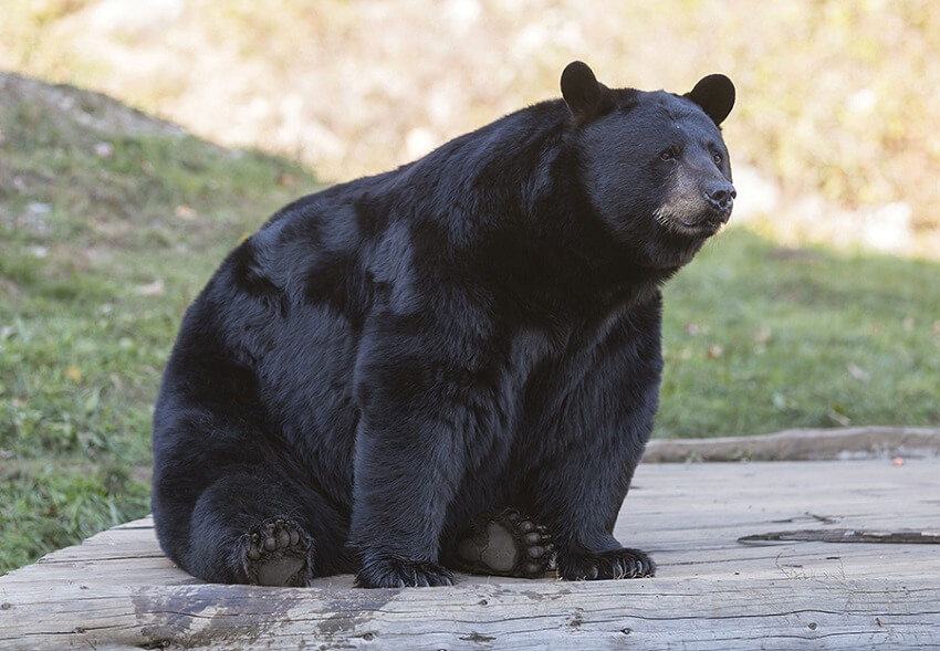 The American Black Bear (Ursus americanus) is the smallest and most common bear species in North America. Adult males can weigh up to 300 kg (661 lbs), while adult females weigh up to 79 kg (174 lbs).