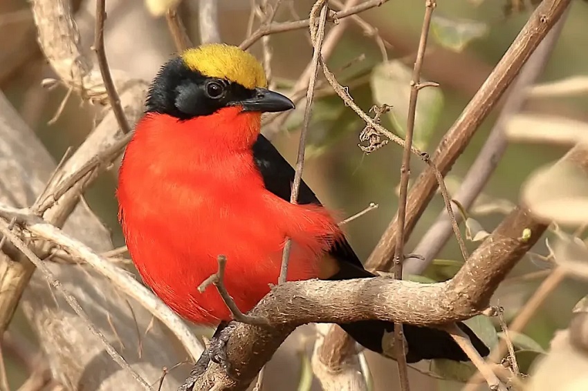 This bird belongs to the Laniarius family and is a carnivorous species. They primarily live in Africa, in shrublands and woodlands.