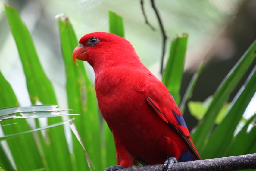 The Red Lory lives on the Moluccas Islands in Indonesia and the surrounding islands.